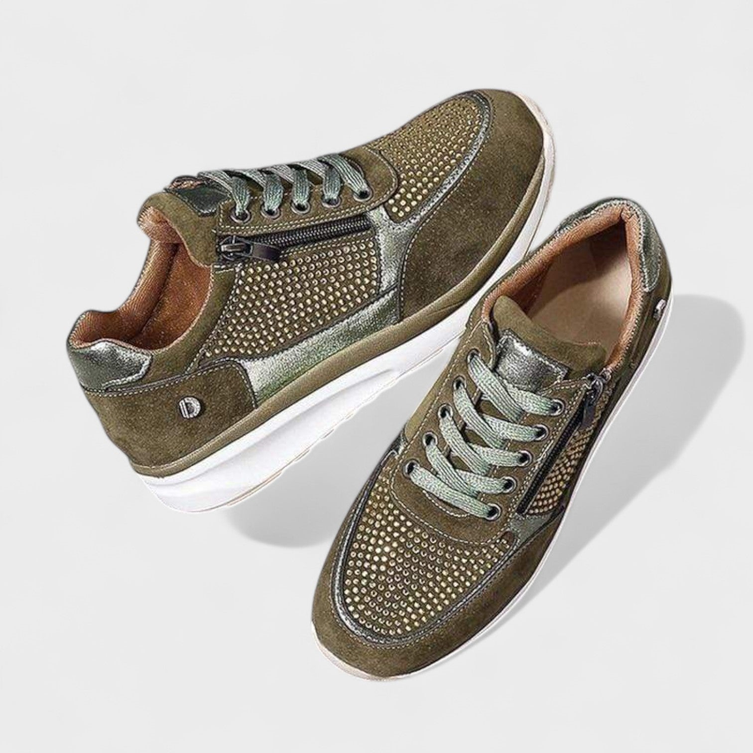 Estes ténis ortopédicos foram pensados para quem procura o equilíbrio perfeito entre conforto, apoio e estilo. Com design moderno e detalhes discretamente brilhantes, adaptam-se a vários looks sem comprometer a saúde dos pés.