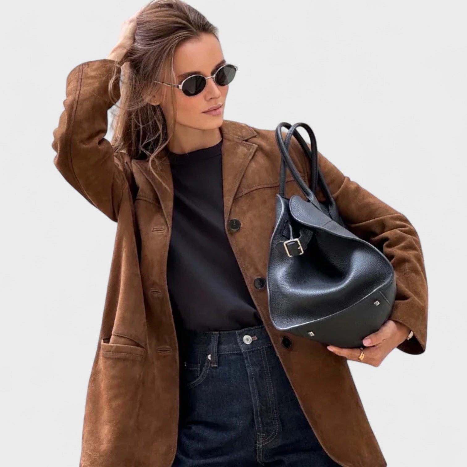 O blazer Marta combina o charme clássico do corte alfaiatado com a vibe despojada da camurça. Em um tom marrom terroso super versátil, ele traz personalidade e elegância a qualquer produção — do jeans básico à calça de alfaiataria. Estruturado na medida certa, é aquele item-chave que eleva o visual sem esforço.